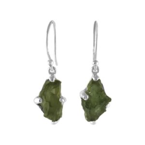 Rough Moldavite Dangle Earrings in Sterling Silver