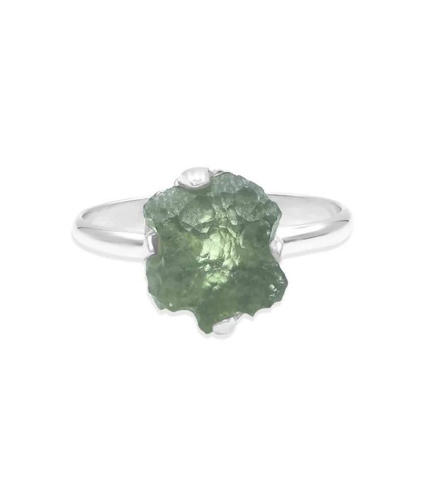 Genuine Moldavite Ring in Sterling Silver (1-2 ct)