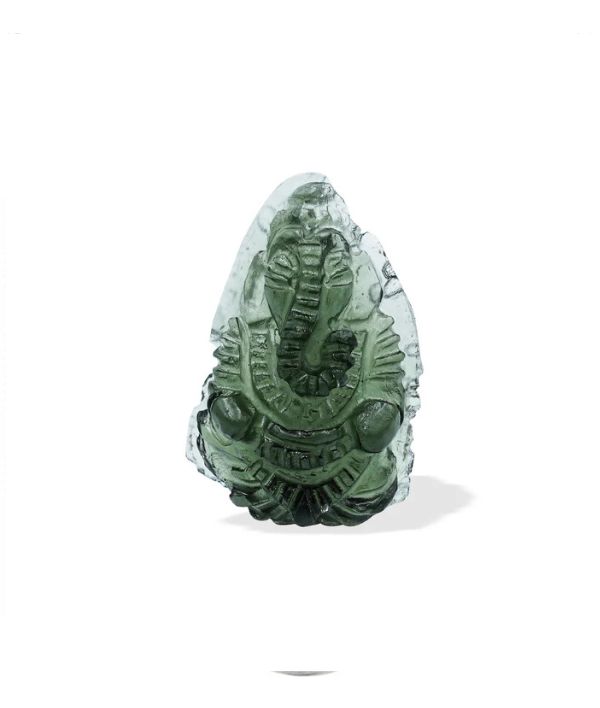 / Hand Carved Moldavite Ganesh 13 cts – 1 Piece