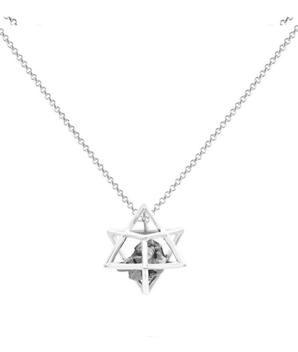 Merkabah Sterling Silver Cage Pendant and Chain with Natural Raw Gemstone