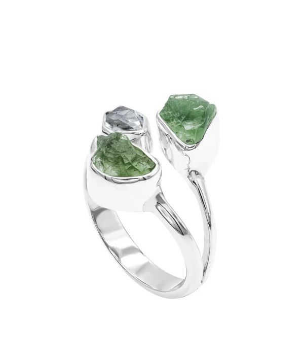 Moldavite and Herkimer Diamond Ring in Sterling Silver quantity