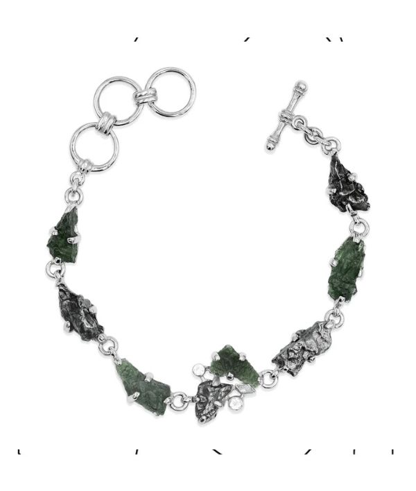 / Moldavite, Meteorite and White Topaz Bracelet in Sterling Silver