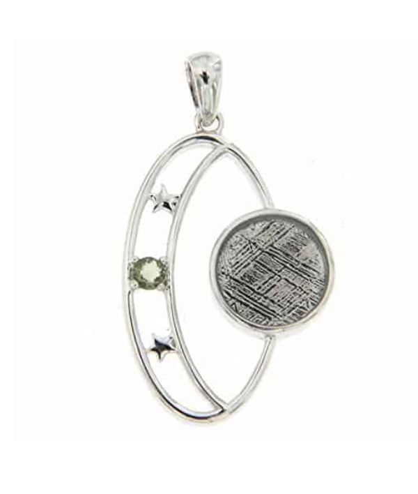 Moldavite & Muonionalusta Meteorite Pendant in Sterling Silver