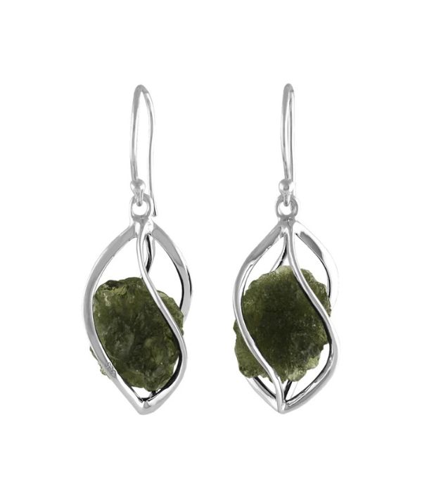 Moldavite Spiral Caged Earrings in Sterling Silver