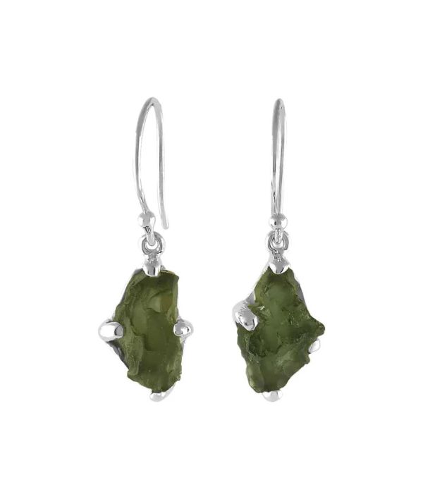 Rough Moldavite Dangle Earrings in Sterling Silver quantity